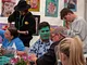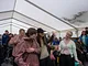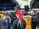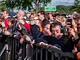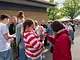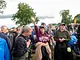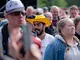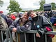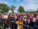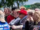 Vagtskiftet ved Marselisborg Slot skærtorsdag kl. 12 tiltrak mange fremmødte, mens politiets indsatsleder undervejs tog sig tid til at besvare spørgsmål fra en nysgerrig dreng.