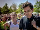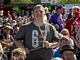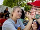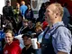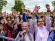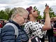 Vagtskiftet ved Marselisborg Slot skærtorsdag kl. 12 tiltrak mange fremmødte, mens politiets indsatsleder undervejs tog sig tid til at besvare spørgsmål fra en nysgerrig dreng.