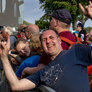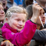 Vagtskiftet ved Marselisborg Slot skærtorsdag kl. 12 tiltrak mange fremmødte, mens politiets indsatsleder undervejs tog sig tid til at besvare spørgsmål fra en nysgerrig dreng.