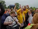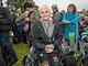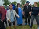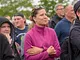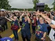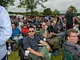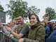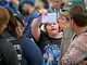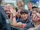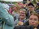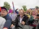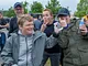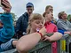 Vagtskiftet ved Marselisborg Slot skærtorsdag kl. 12 tiltrak mange fremmødte, mens politiets indsatsleder undervejs tog sig tid til at besvare spørgsmål fra en nysgerrig dreng.