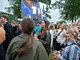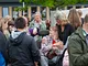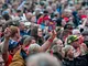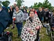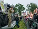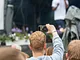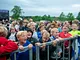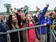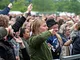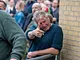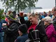 Vagtskiftet ved Marselisborg Slot skærtorsdag kl. 12 tiltrak mange fremmødte, mens politiets indsatsleder undervejs tog sig tid til at besvare spørgsmål fra en nysgerrig dreng.