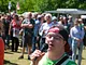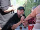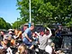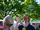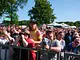 Vagtskiftet ved Marselisborg Slot skærtorsdag kl. 12 tiltrak mange fremmødte, mens politiets indsatsleder undervejs tog sig tid til at besvare spørgsmål fra en nysgerrig dreng.