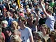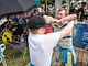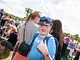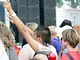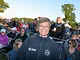 Vagtskiftet ved Marselisborg Slot skærtorsdag kl. 12 tiltrak mange fremmødte, mens politiets indsatsleder undervejs tog sig tid til at besvare spørgsmål fra en nysgerrig dreng.