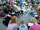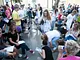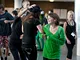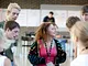 Vagtskiftet ved Marselisborg Slot skærtorsdag kl. 12 tiltrak mange fremmødte, mens politiets indsatsleder undervejs tog sig tid til at besvare spørgsmål fra en nysgerrig dreng.