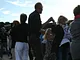 Vagtskiftet ved Marselisborg Slot skærtorsdag kl. 12 tiltrak mange fremmødte, mens politiets indsatsleder undervejs tog sig tid til at besvare spørgsmål fra en nysgerrig dreng.
