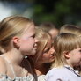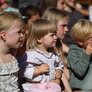 Vagtskiftet ved Marselisborg Slot skærtorsdag kl. 12 tiltrak mange fremmødte, mens politiets indsatsleder undervejs tog sig tid til at besvare spørgsmål fra en nysgerrig dreng.