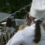 Vagtskiftet ved Marselisborg Slot skærtorsdag kl. 12 tiltrak mange fremmødte, mens politiets indsatsleder undervejs tog sig tid til at besvare spørgsmål fra en nysgerrig dreng.