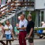 Vagtskiftet ved Marselisborg Slot skærtorsdag kl. 12 tiltrak mange fremmødte, mens politiets indsatsleder undervejs tog sig tid til at besvare spørgsmål fra en nysgerrig dreng.