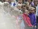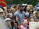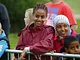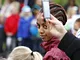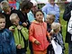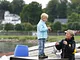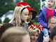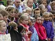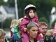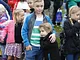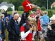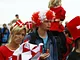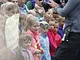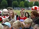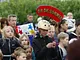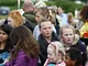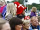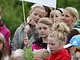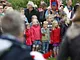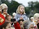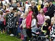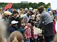 Vagtskiftet ved Marselisborg Slot skærtorsdag kl. 12 tiltrak mange fremmødte, mens politiets indsatsleder undervejs tog sig tid til at besvare spørgsmål fra en nysgerrig dreng.