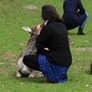 Vagtskiftet ved Marselisborg Slot skærtorsdag kl. 12 tiltrak mange fremmødte, mens politiets indsatsleder undervejs tog sig tid til at besvare spørgsmål fra en nysgerrig dreng.