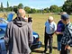 Vagtskiftet ved Marselisborg Slot skærtorsdag kl. 12 tiltrak mange fremmødte, mens politiets indsatsleder undervejs tog sig tid til at besvare spørgsmål fra en nysgerrig dreng.