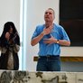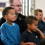 Vagtskiftet ved Marselisborg Slot skærtorsdag kl. 12 tiltrak mange fremmødte, mens politiets indsatsleder undervejs tog sig tid til at besvare spørgsmål fra en nysgerrig dreng.