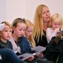 Endnu engang slog sognepræsterne - Hans Boas og Inger Bråe - sig løs i Lystrup Kirke. Denne gang var det i Paradiset Have - sammen med Lyri (den dejlige dukke), med Sigurd Barrett´s børnesange i bogen Biblehistorier og en masse spændte børn. Bagefter spiste vi spaghetti.