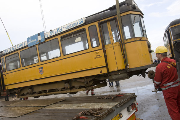 De gamle Århus sporvogne flytter fra busgaragerne på Bryggervej til opbevaring i Ryomgård. Det er meningen at de senere skal vende tilbage til Århus Bymuseum, når der er skabt plads langs med Brabrandstien