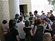 Vagtskiftet ved Marselisborg Slot skærtorsdag kl. 12 tiltrak mange fremmødte, mens politiets indsatsleder undervejs tog sig tid til at besvare spørgsmål fra en nysgerrig dreng.