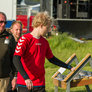 Vagtskiftet ved Marselisborg Slot skærtorsdag kl. 12 tiltrak mange fremmødte, mens politiets indsatsleder undervejs tog sig tid til at besvare spørgsmål fra en nysgerrig dreng.
