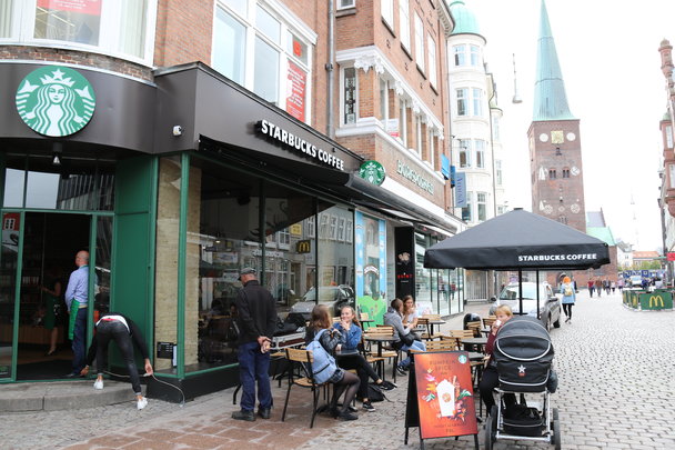 Starbucks kaffebar er indrettet i lokalerne i den daværende isenkramforretning. Og har dermed fået en unik placering i midtbyen.