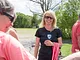 Vagtskiftet ved Marselisborg Slot skærtorsdag kl. 12 tiltrak mange fremmødte, mens politiets indsatsleder undervejs tog sig tid til at besvare spørgsmål fra en nysgerrig dreng.