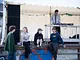 Vagtskiftet ved Marselisborg Slot skærtorsdag kl. 12 tiltrak mange fremmødte, mens politiets indsatsleder undervejs tog sig tid til at besvare spørgsmål fra en nysgerrig dreng.