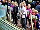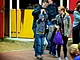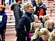 Vagtskiftet ved Marselisborg Slot skærtorsdag kl. 12 tiltrak mange fremmødte, mens politiets indsatsleder undervejs tog sig tid til at besvare spørgsmål fra en nysgerrig dreng.