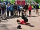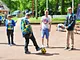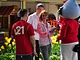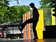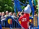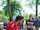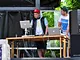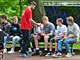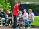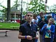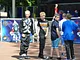 Vagtskiftet ved Marselisborg Slot skærtorsdag kl. 12 tiltrak mange fremmødte, mens politiets indsatsleder undervejs tog sig tid til at besvare spørgsmål fra en nysgerrig dreng.