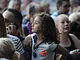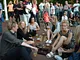Vagtskiftet ved Marselisborg Slot skærtorsdag kl. 12 tiltrak mange fremmødte, mens politiets indsatsleder undervejs tog sig tid til at besvare spørgsmål fra en nysgerrig dreng.