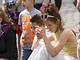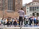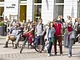 Vagtskiftet ved Marselisborg Slot skærtorsdag kl. 12 tiltrak mange fremmødte, mens politiets indsatsleder undervejs tog sig tid til at besvare spørgsmål fra en nysgerrig dreng.