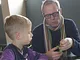 Vagtskiftet ved Marselisborg Slot skærtorsdag kl. 12 tiltrak mange fremmødte, mens politiets indsatsleder undervejs tog sig tid til at besvare spørgsmål fra en nysgerrig dreng.