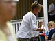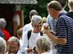 Vagtskiftet ved Marselisborg Slot skærtorsdag kl. 12 tiltrak mange fremmødte, mens politiets indsatsleder undervejs tog sig tid til at besvare spørgsmål fra en nysgerrig dreng.