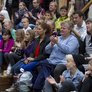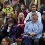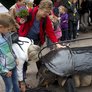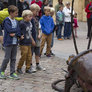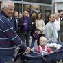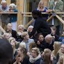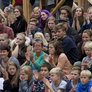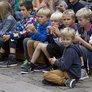 Vagtskiftet ved Marselisborg Slot skærtorsdag kl. 12 tiltrak mange fremmødte, mens politiets indsatsleder undervejs tog sig tid til at besvare spørgsmål fra en nysgerrig dreng.