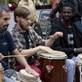 Der var afrikansk stemning af trommer og stort publikum på Store Torv
