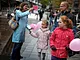 Vagtskiftet ved Marselisborg Slot skærtorsdag kl. 12 tiltrak mange fremmødte, mens politiets indsatsleder undervejs tog sig tid til at besvare spørgsmål fra en nysgerrig dreng.