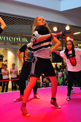 Støt brysterne som der arrangeret af kræftensbekæmpelse samlede ind og sørgede for underholdning i Bruuns Galleri idag. Der var showdance og ballondans.