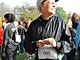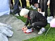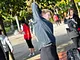 Vagtskiftet ved Marselisborg Slot skærtorsdag kl. 12 tiltrak mange fremmødte, mens politiets indsatsleder undervejs tog sig tid til at besvare spørgsmål fra en nysgerrig dreng.