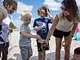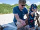 Vagtskiftet ved Marselisborg Slot skærtorsdag kl. 12 tiltrak mange fremmødte, mens politiets indsatsleder undervejs tog sig tid til at besvare spørgsmål fra en nysgerrig dreng.