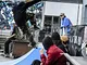Vagtskiftet ved Marselisborg Slot skærtorsdag kl. 12 tiltrak mange fremmødte, mens politiets indsatsleder undervejs tog sig tid til at besvare spørgsmål fra en nysgerrig dreng.