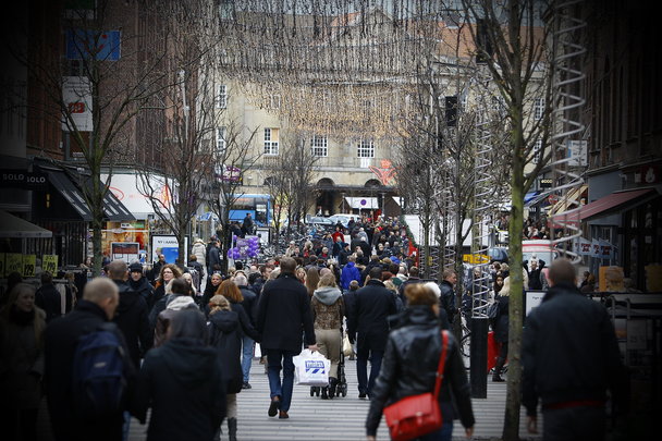 På trods af længe åbent i butikkerne i går aftes, og det "sure" lørdagsvejr, så var der mange mennesker på Strøget i Århus i dag lørdag. Om det er julehandlen der nu starter, skal være udsagt; julestemningen blev dog forsøgt øget ved Frelsens Hærs orkester, der livligt spillede julemelodier mens raslebøsserne blev godt rystet.