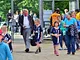 Vagtskiftet ved Marselisborg Slot skærtorsdag kl. 12 tiltrak mange fremmødte, mens politiets indsatsleder undervejs tog sig tid til at besvare spørgsmål fra en nysgerrig dreng.