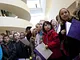 Vagtskiftet ved Marselisborg Slot skærtorsdag kl. 12 tiltrak mange fremmødte, mens politiets indsatsleder undervejs tog sig tid til at besvare spørgsmål fra en nysgerrig dreng.