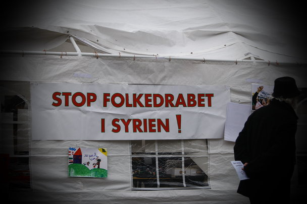 En Syrisk demonstration på Bispetorv denne eftermiddag. Flere talere talte Syriens sag for frihed og menneskerettigheder. Desværre ikke mange danskere so bakkede ønsket op. Der var blandt andet tale af imam Abdul Wahid Pedersen.
