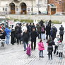 Vagtskiftet ved Marselisborg Slot skærtorsdag kl. 12 tiltrak mange fremmødte, mens politiets indsatsleder undervejs tog sig tid til at besvare spørgsmål fra en nysgerrig dreng.