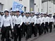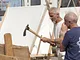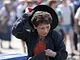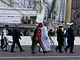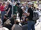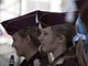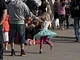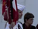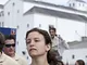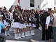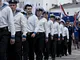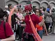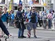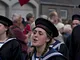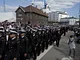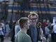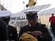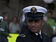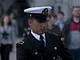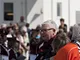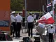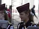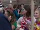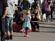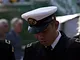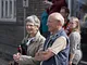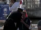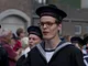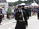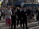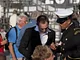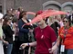 Vagtskiftet ved Marselisborg Slot skærtorsdag kl. 12 tiltrak mange fremmødte, mens politiets indsatsleder undervejs tog sig tid til at besvare spørgsmål fra en nysgerrig dreng.