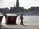 En isfyldt tur langs vandet, fra Dokk1 til Bellevue, og forbi den frost ramte badeanstalt.