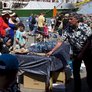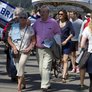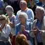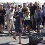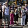 Vagtskiftet ved Marselisborg Slot skærtorsdag kl. 12 tiltrak mange fremmødte, mens politiets indsatsleder undervejs tog sig tid til at besvare spørgsmål fra en nysgerrig dreng.