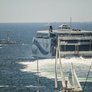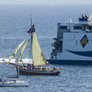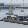 Masser af aktivitet på Århusbugten med sejlskibene, der forlod byen, samtidig med at 49'erne holdt konkurrence.