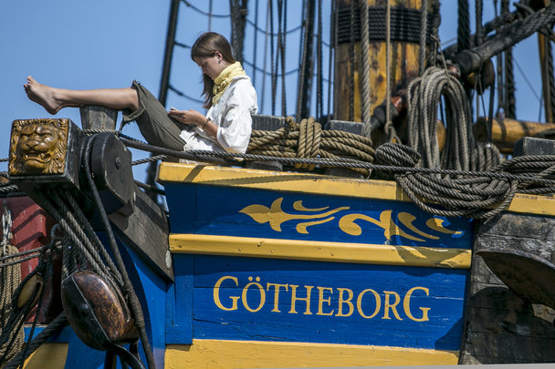 Tall Ships Races forlader Århus med kurs mod Helsinki. Der gøres klar til afsejling go der vinkes flittigt.