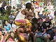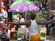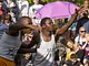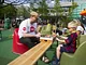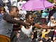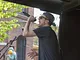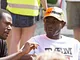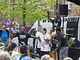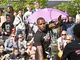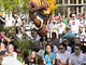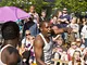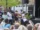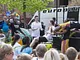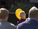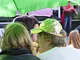 Vagtskiftet ved Marselisborg Slot skærtorsdag kl. 12 tiltrak mange fremmødte, mens politiets indsatsleder undervejs tog sig tid til at besvare spørgsmål fra en nysgerrig dreng.