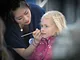 Vagtskiftet ved Marselisborg Slot skærtorsdag kl. 12 tiltrak mange fremmødte, mens politiets indsatsleder undervejs tog sig tid til at besvare spørgsmål fra en nysgerrig dreng.