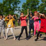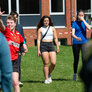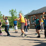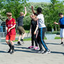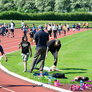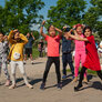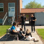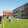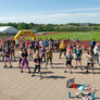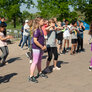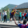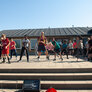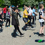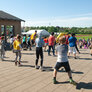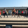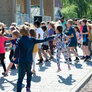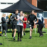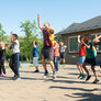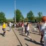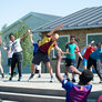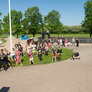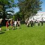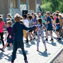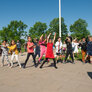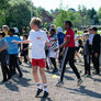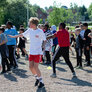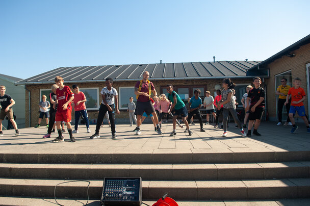 Vi besøgte Vestergårdsskolen hvor der var højt humør og højt aktivitetsniveau efter grundig opvarmning under kyndig instruktion. Det gjorde heller ikke noget at solen strålede fra en skyfri himmel