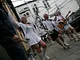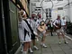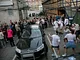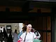 Vagtskiftet ved Marselisborg Slot skærtorsdag kl. 12 tiltrak mange fremmødte, mens politiets indsatsleder undervejs tog sig tid til at besvare spørgsmål fra en nysgerrig dreng.
